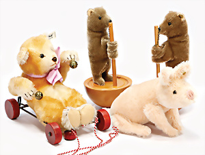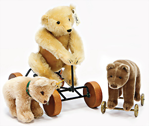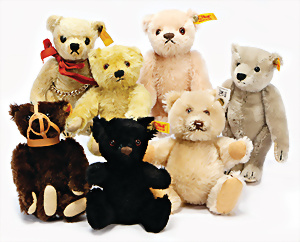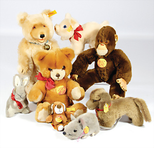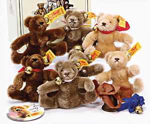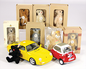 STEIFF, 7 Teile, neuere Produktion, 2001 – 2005, STEIFF Club-Bären u. Replika Bären, 1 Schlüsselanhänger 10 – 11 cm, neuw. Orig.-Kart., dazu 2 BURAGO Autos, BMW Isetta der Stern, 1 Porsche, Carrera, guter Zust.