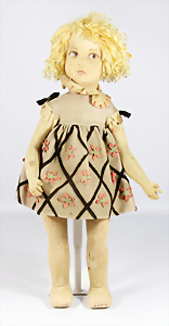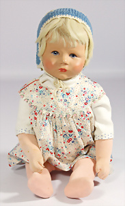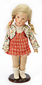 Mädchen, Puppe Nr. VIII, 50 cm, Stoffkopf, deutl. sichtbare Hinterkopfnaht, leicht eingeknickte Beine mit abgenähten Kniekehlen, KÄTHE KRUSE Schriftzug auf der Fußsohle, gem. 1119 4, guter Zust., dünne Bemalung