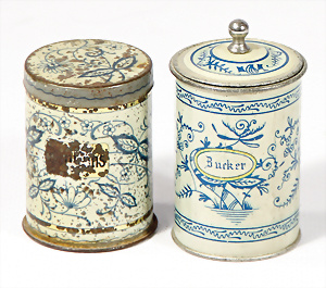 Zuckerdose, Blech lithogr., mit Knauf, 6,5 cm, sehr guter Zust., 1 Dose, Blech lithogr, Lackfehler
