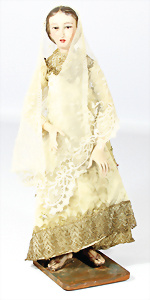 Sakrale Holzpuppe, Madonna, 40 cm, teilw. farbl. ausgebessert, alte Kleidung