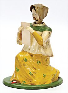 Kopfnicker, Papiermaché, Biedermeier, mit bewegl. Unterkiefer, 18,5 cm, 1 paar Spannungsrisse sowie ein wenig Masseverlust am am Kinn, sonst schöner Orig.-Zust., Orig. Bemalung, schöne Dekoration zu einer großen, herrschaftlichen, frühen Stube