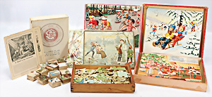Konv. Spiele, Legespiele, Fahrradspiel, teilw. Winter- u. Weihnachtsszenen, 50er Jahre bis 1900