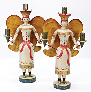 Engelsleuchter, 2 Teile, Holz farbig gefasst, Blech-Flügel, 41 cm, neuere Produktion