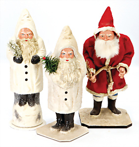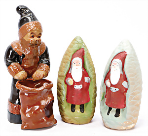 3 Teile Weihnachtsmänner, neuere Produktion, davon 2x Candy-Container, Atelier Nostalgie, 23-24 cm