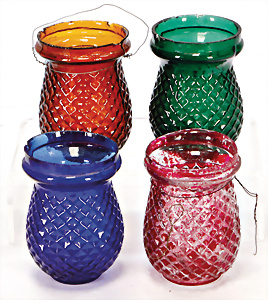 4 Teile, Christbaumschmuck, Glas, Fairy Lamps, Candle Holders (Kerzenhalter), H: 9 cm, teils etwas bestoßen