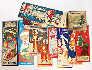 Konv. Lametta, Krystall-Lametta, Brilliant-Lametta, Stanniol-Lametta, 18 Verpackungen mit Inhalt