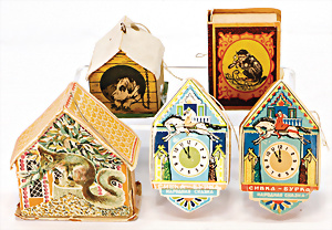 Konv. 5 Schachteln, 1x Spanschachtel, Gebr. Wagner, Nürnberg, Nachtlichter, gefüllt, 8 cm, 1 Schachtel, lithogr. 30er Jahre mit Puppenküche, 1 Holz-Schachtel mit lithogr. Deckbild, 17,5 cm, kl. Pappschachtel, Städteansicht, kl. Schachtel, fechtende Kinder, dazu 1 runde Blechdose