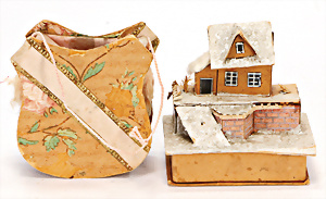 2 Teile, Christbaumschmuck, Tasche, Candy-Container, H: 9 cm, kl. Papphaus mit Glimmer, H: 7,5 cm