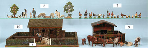 Stall, ELASTOLIN, Holz, dazu 12 Teile, meist Bauernhoftiere, LINEOL, ELASTOLIN und andere, Zust. 2-3, ein paar Figuren beschädigt