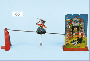 KEIM & CO Zirkus mit Mann auf Drahtseil, Blech lithogr., Uhrwerk intakt, sehr guter Zust., nur kl. Spielspuren, Made in Germany