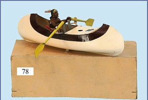 ARNOLD Kajak, Blech, Indianerfigur, Masse, US-Zone Germany, selten, 21 cm, sehr guter Zust., unbespielt, im Orig.-Kart.