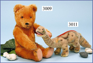 STEIFF Dinosaurier, Brontosaurus, 30 cm, mit Knopf, Fahne abgeschnitten, ohne Schild, guter Zust.