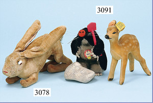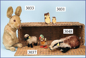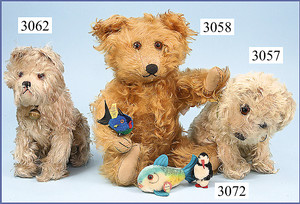 STEIFF 3 Teile, 60er/70er Jahre, Swinny, kompl., Nr. 2250/09, 1 Ente, kompl., Nr. auf Fahne 6311.07, 1 Bazi, mit Schild, Halsband, ohne Knopf u. Fahne