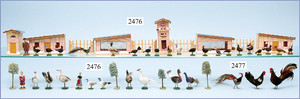 3 Teile Federvieh, Masse, aufgeklebte Federn, Drahtfüße, früh, für frühen Stall o. Rauchfangküche, Höhe Hahn 7 cm