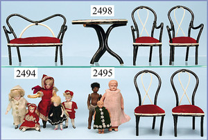 THONET Möbelprogramm, Bank, 17 cm lang, Bezug an kl. Stelle ausgebessert, 2 Sessel, 2 Stühle, 1 runder Tisch