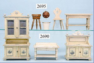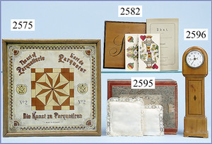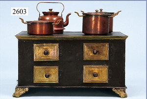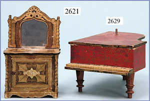 Puppenstuben-Waschtisch, mit BOULLE-Ornamenten, 11 cm breit, mit Glasteilen, sehr guter Zust.