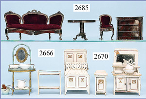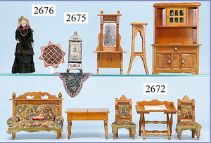 Puppenstuben-Biedermeierbett, 9,5 cm