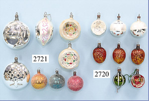 Konv. Christbaumschmuck, Glas, 6 flache Kugeln, mit versch. Motiven, 23 Teile Kugeln, einige kl. Kugeln, 1 Glaskette (n. a. T. f.)