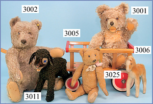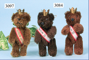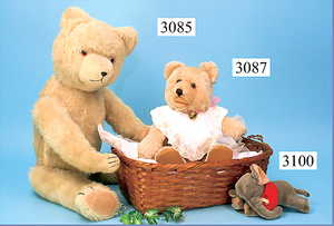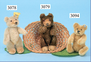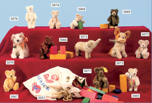 STEIFF 3 parts, Micki, with button, chest label and cloth tag label, No. 8709.80, 1x Mucki, with button, chest label and cloth tag label, No. 8712.80, 1x Macki, with button, chest label and cloth tag label No. 8712.70