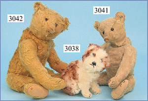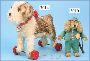STEIFF 2 parts, 1 terrier, with button, standing, minimally mohair loss, length 30 cm, with 1 STEIFF dachshund, length 42 cm