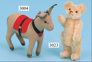 STEIFF donkey, No. 1124,1909, with button, rests of the white cloth tag label, button eyes, very good condition (nearly unused), with bell, 10.5 cm