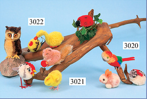 STEIFF 4 parts wool animal, without damage, duck (No. 7212-08), bird (No. 7085-10), cock (No.7255-06), chick (No.7260-08)