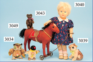 STEIFF 2 parts, 1x Susi, with chest label, button and cloth tag label are missing, 1 cat with chest label and button, cloth tag label is missing