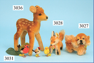 STEIFF 3 parts wool animals, hare, 7131/04, with button and cloth tag label, 2 bumblebees, without button and cloth tag label, very good condition