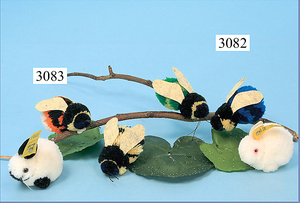 STEIFF 3 parts wool animals, 2 bumblebees, without button and cloth tag label, 1 hare, with button and cloth tag label, No. 7133/04, very good condition