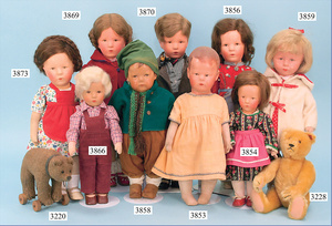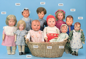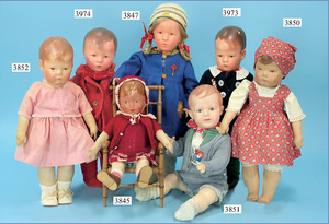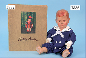 KÄTHE KRUSE mannequin, "Friedebald", 1.05 m, magnesite head, with lashes, nice original painting, wig with pushbuttons, the wires in the arms are possibly broken, fabric of the fingers is slightly worn, all in all good condition, nice painting, small crack at a cheek