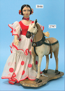 LENCI felt doll, 43 cm, Spanish woman, with floral decorations, original clothes, fine plaited plait, original clothes, good condition