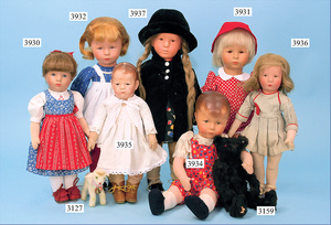 KÄTHE KRUSE small Du Mein, 36 cm, fabric head, 3 seams at the back of the head, broad hip separate sewed on thumb, at hair at the back of the head colorwise retouched, with small repaired places at the hands, otherwise head and body with very good condition, nice fine painting, old dresses