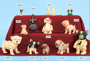 JUNO dog, 13 cm, celluloid, 5-fold jointed, forehead and snout were slightly repaired, rare, good condition