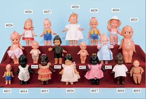 MINERVA Kewpie, celluloid, 21 cm ( rare size ), fix head, bent to the side, to the side looking eyes, modelled ribbon, jointed arms, good condition, rare