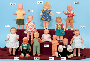 SCHILDKRÖT 3 parts celluloid, "Inge", 19 1/2 cm, girl with glued on wig, 19 cm, 1 "Strampelchen", celluloid, 12.5 cm, everything with a very good condition