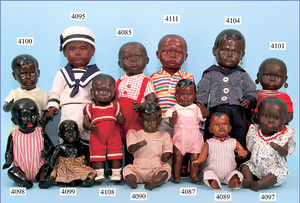 SCHILDKRÖT Bebi, black, on a sitting body, Bebi 1925, 30 cm, celluloid, socket head, fix inset brown glass eyes, modelled hair, very good condition