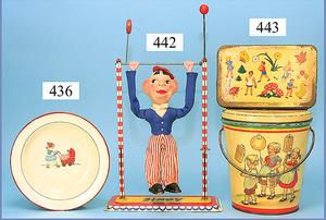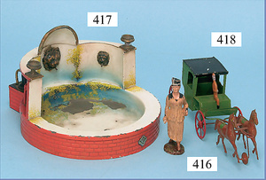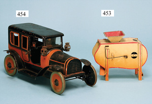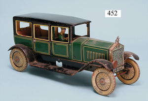 MÄRKLIN age-old, track II, CEE 1022, steam locomotive with separate tender 2B1, 2-axled tender, handpainted tin, green/black, clock mechanism drive, forward/backward, brake, 1 side without linkages, 1 screw is missing, brake rigging is loosely add, 1 buffer poin in front is break off, otherwise nice unused original condition, nice paints, with just some formations of spider lines at the roof, clock mechanism is intact, loft find from a manorial household
