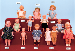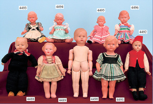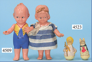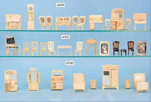 LEISTRIZ & CO., Celluloidwarenfabrik, Nürnberg celluloid furniture program, living-room suite, table, 6.5 cm, 4 chairs, bench, small piano, with stool, writing desk with 2 chairs, sewing table, coatrack, clock, good condition, nice decoration for a small dollhouse, room or as decoration for small early celluloid dolls, c. 1910 - 1913