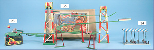 GÖSO, Coney Island Coaster, Berg- u. Talbahn, Blech lithogr, Höhe Turm, 40 cm, guter Zust., im Orig.-Kart., mit Fahrzeug, Kart. etwas verschlissen