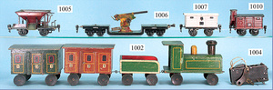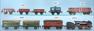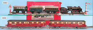MÄRKLIN, Spur 0, Schlepptenderlok B, Uhrwerk, 2 Personenwagen, 1 Gepäckwagen, Uhrwerk intakt, bespielt, mit Gleismaterial u. Kleinteilen