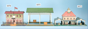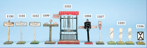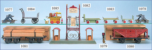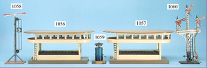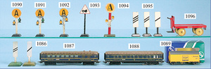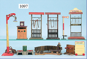 Konv. MÄRKLIN u. BING, Spur H0, Schienen mit 8 Weichen, Spur 0 u. Spur I, 3 Fahrtrichtungsanzeiger, 1 Laterne, 1 Toilettenhaus, mit Beleuchtung, div. Kleinteile, 1 Zeitungswagen, 1 Fass, BP, Energol, 1 Elektrokarre, mit Mann