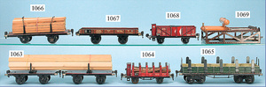 MÄRKLIN, Langholzwagen, 1961G, 2 Drehschemelwagen, beladen, ohne Spannketten, Spur I, guter Zust., 2, Länge 41 cm