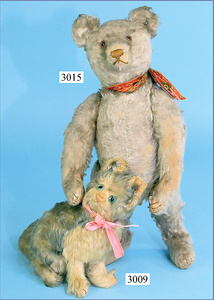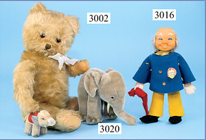 STEIFF, Konv. 3 Teile, 1x Robby, mit Knopf, Schild u. Reste der gelben Fahne, 12 cm, 1x Seeelefant, 19 cm, ohne Knopf, Schild u. Fahne, 1x kl. Terrier, mit neu angenähten Ohren, mit Knopf u. Fahne, 9 cm, bespielt, sonst guter Zust.