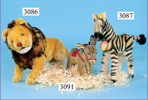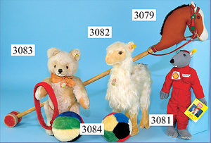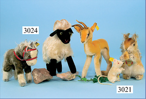 STEIFF, Konv. 3 Teile, 1x Antilope, mit Knopf u. Fahne (Nr. 322,00), 21 cm, 1x Steinbock, mit Knopf u. Fahne (Nr. 1322,00), 1x Pony, mit Knopf u. Fahne (Nr. 318,03), 16-25 cm, schönes Konv.