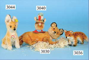STEIFF, Fuchs 'Xorry', mit Knopf, Schild u. Fahne (Nr. 3312,00), sitzend, 11,5 cm, sehr guter Zust.