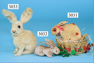 STEIFF, Konv. 3 Hasen, alle 3 ohne Knopf, Schild u. Fahne, 11 - 15 cm, alle 3 sitzend, guter Zust.