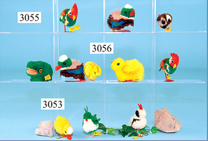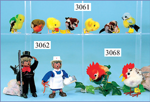 STEIFF, Konv. 5 Teile Wollminiaturen, 2 Küken, 1 Ente, 1 Hahn, 1 Frosch, alle kompl., guter Zust.