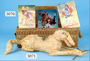 STEIFF, Hase, sitzend, mit Knopf, minim. Reste der roten Fahne, Ohren mit Draht, Druckstimme defekt, drehbarer Kopf, 18 cm, 1926-31 hergestellt, ein wenig abgeliebt, sonst guter Zust.