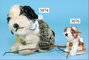 STEIFF, Konv. 2 Teile Hunde, 1x Cocky, kompl. mit Knopf, Schild u. Fahne (Nr. 1317,0), 1x Foxi, Nr. auf Fahne: 1317,0, 16-17 cm, beide mit US-Zone Fahne, guter Zust.