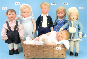 KÄTHE KRUSE Du Mein, Stoffkopf, mit Haaren, dünne Bemalung, gemalte Augen, Orig.-Perücke, 48 cm, Wangen sowie Nase ein wenig ausgebessert, 1 Daumen übernäht, sonst schöner Orig.-Zust., selten in dieser Ausführung